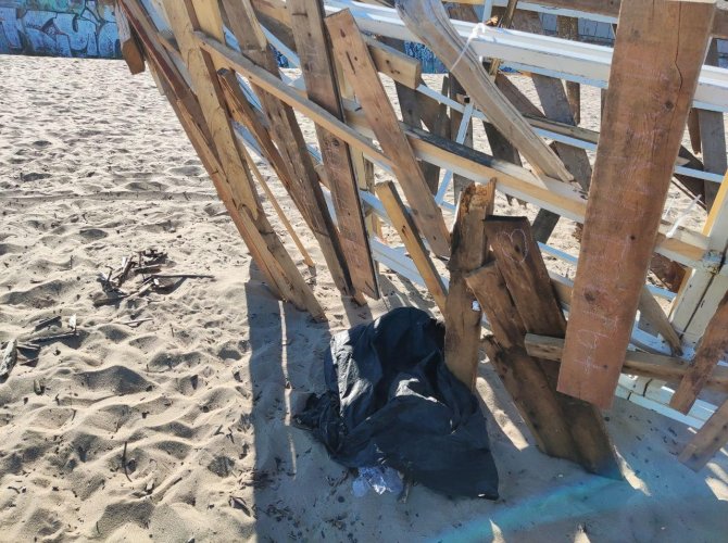 В центре много всяких до сих пор не убранных последствий этого пира во время войны, но самое колоритное последствие бесячества на пляже.