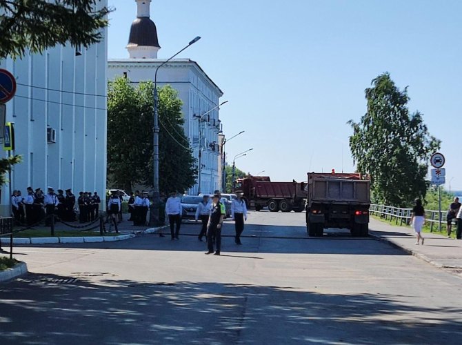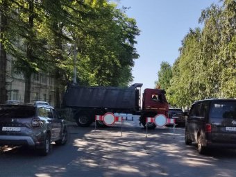 КамАЗ не объедешь при всём желании и даже самый твердолобый автолюбитель будет вынужден свернуть на соседнюю улицу, но почему для этих целей нельзя было использовать машины других ведомств? У правительства области и городской администрации имеется внушительный автопарк, который отлично подошел бы для перекрытия улиц.