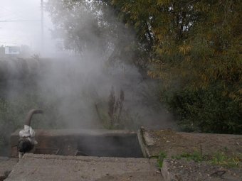Авария привела к выбросу кипятка прямо из-под асфальта.