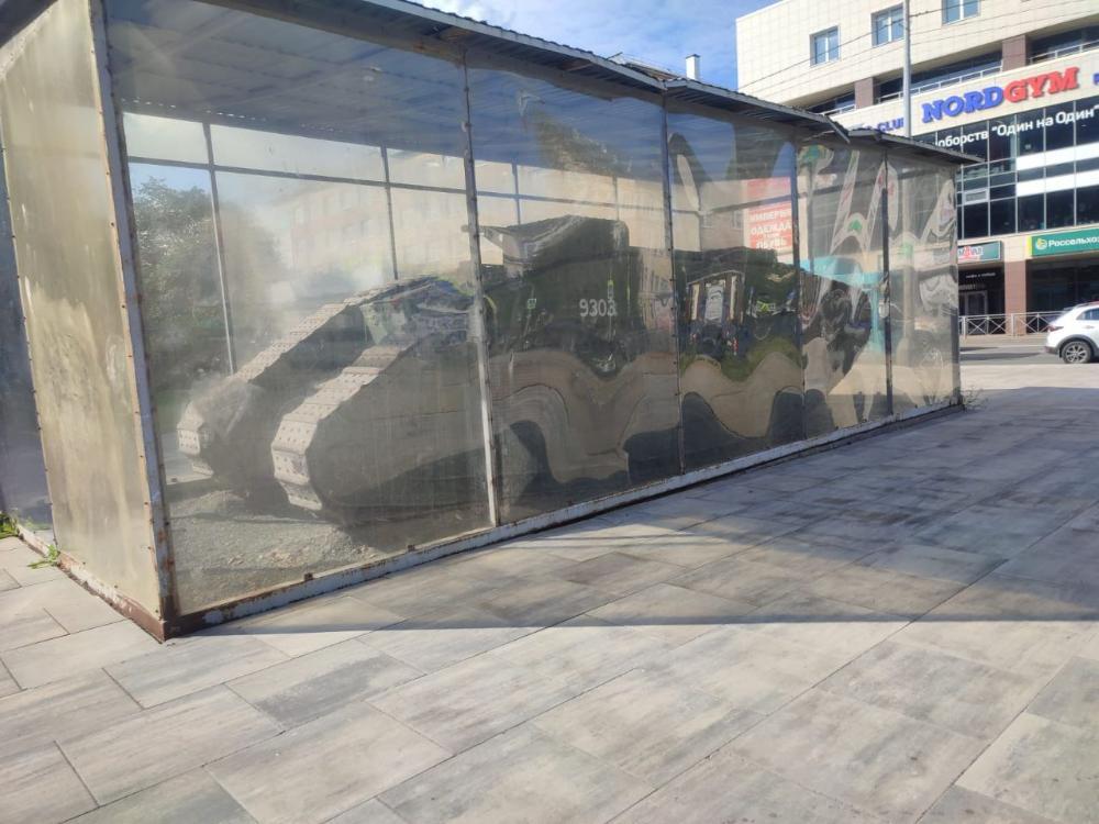 И вот, в конце мая этого года государственное бюджетное учреждение культуры Архангельской области «Архангельский Краеведческий Музей» заключает контракт на 8 миллионов рублей на выполнение работ на устройство павильона для танка «MARK V» вблизи дома № 104 по проспекту Троицкому.