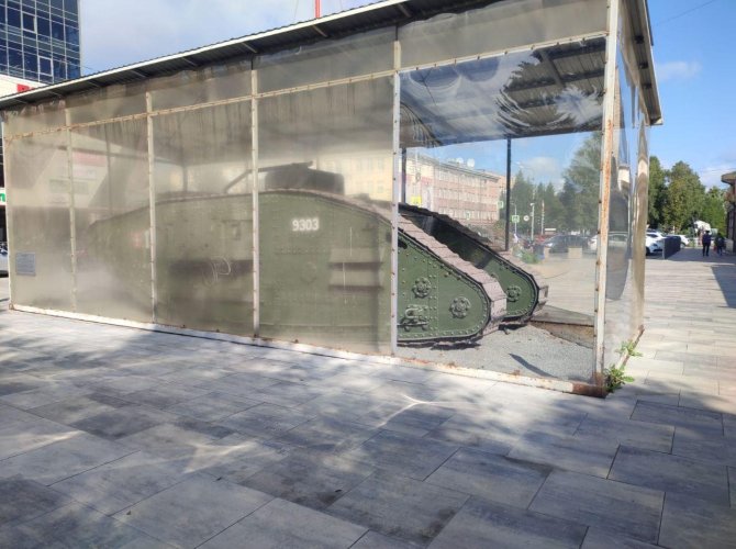 Это тот самый танк, который усилиями бездарных музейных деятелей, не спросив мнение горожан, в начале 2000-х заковали в душный саркофаг.
