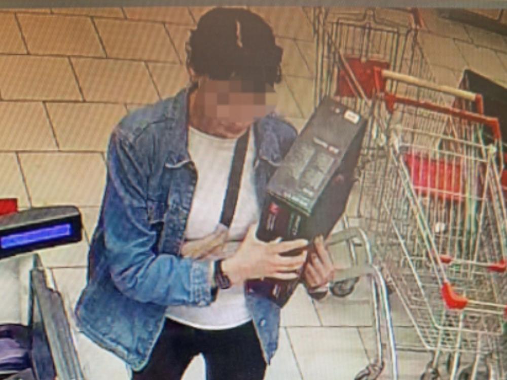 Женщина попала на камеры видеонаблюдения магазина. На кадрах видно, как она берет с витрины робота и спокойно уходит через кассу, не оплатив товар.