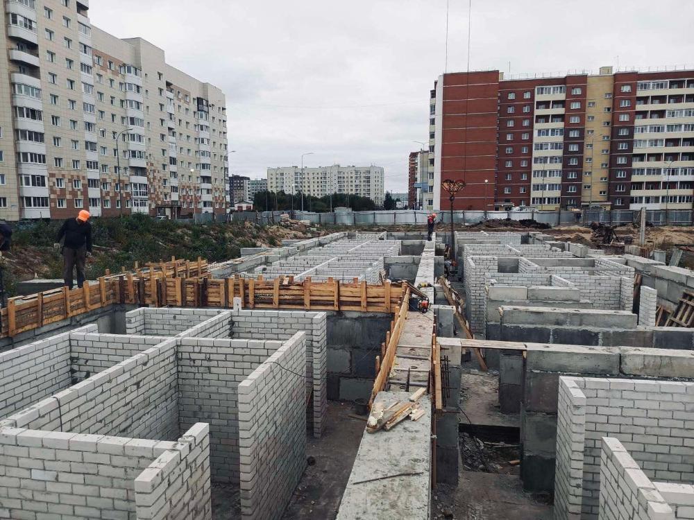 Забиты сваи для первой очереди строительства. Устроены монолитные ж/б ростверки в осях 1-4 / А-К и 1-6 / К/1-Р для первой очереди строительства. Установлены ж/б блоки стен цокольного этажа первой очереди в осях 1-4 / А-К.