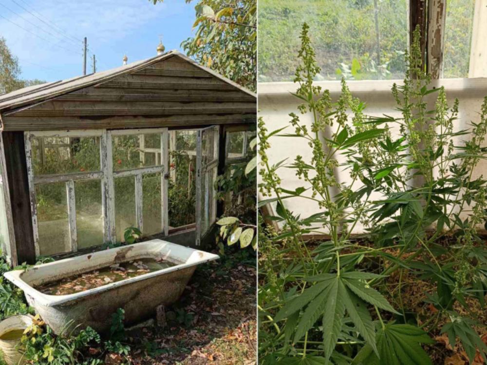 У его частного дома полицейские обнаружили теплицу, в которой среди томатов росли 5 кустов конопли. Еще четыре стояли в горшках на улице.