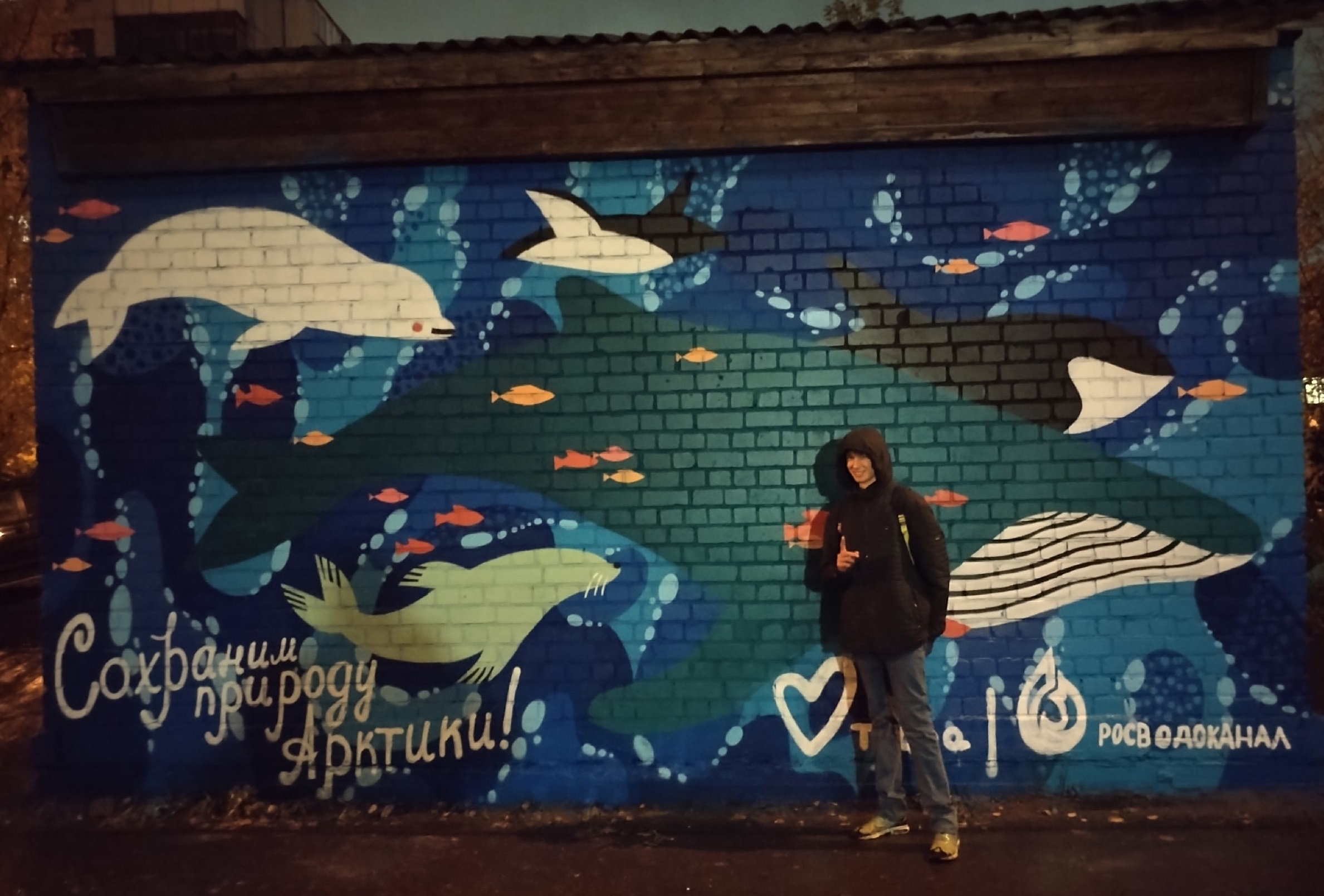 — Идея была расписать станцию на тему сохранения природы Арктики. И я, как любитель всего, что связано с водой, решил нарисовать подводный мир Арктики. Эскиз дался мне легко, так как я люблю рисовать работы в таком минималистичном стиле. Работа простая и очень эффектно выглядит за счет сочетания цветов, — рассказал уличный художник Александр Волков.