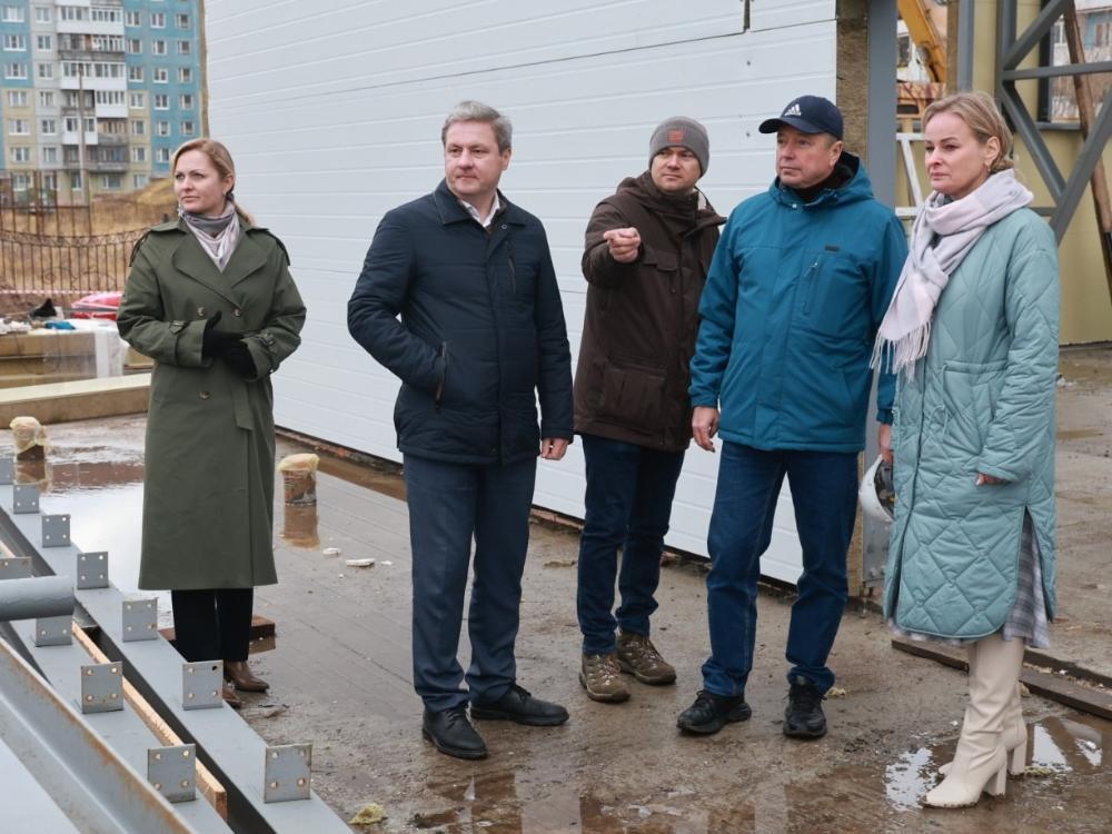 Дмитрий Морев проинспектировал строительство первого в Архангельске модульного спортзала и сделал вывод, что объект возводится по в графику.