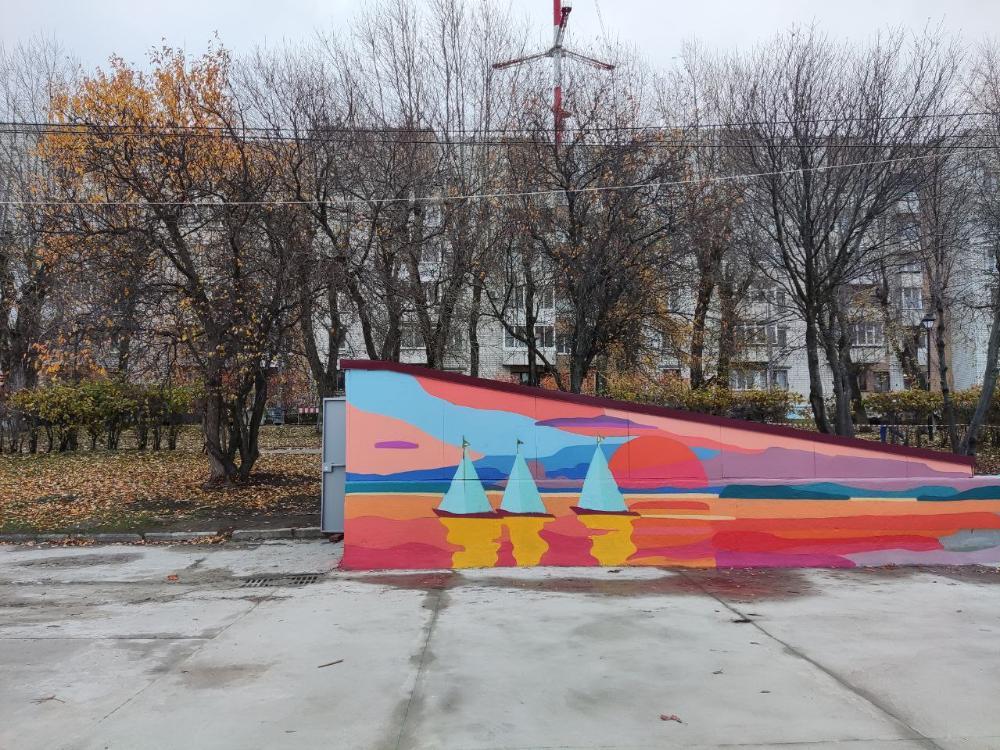 За выходные туалет даже раскрасили снаружи. Теперь главное и единственное отхожее место столицы Поморья украшают яхточки на фоне прекрасного заката над Двиной.