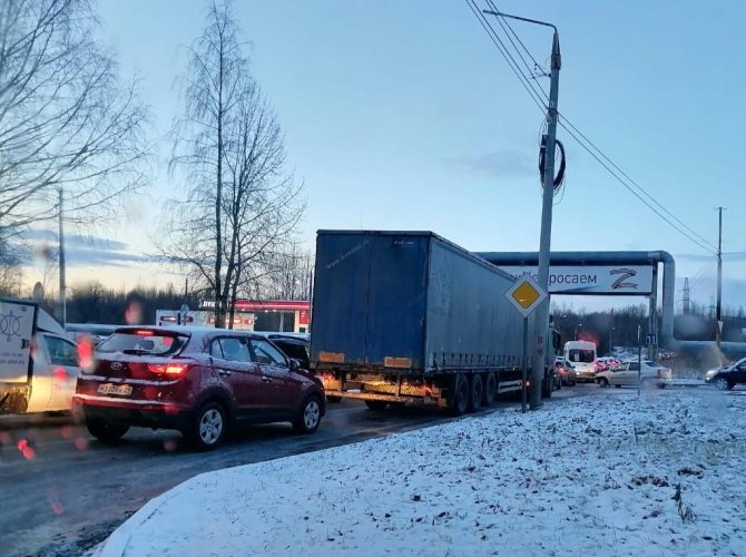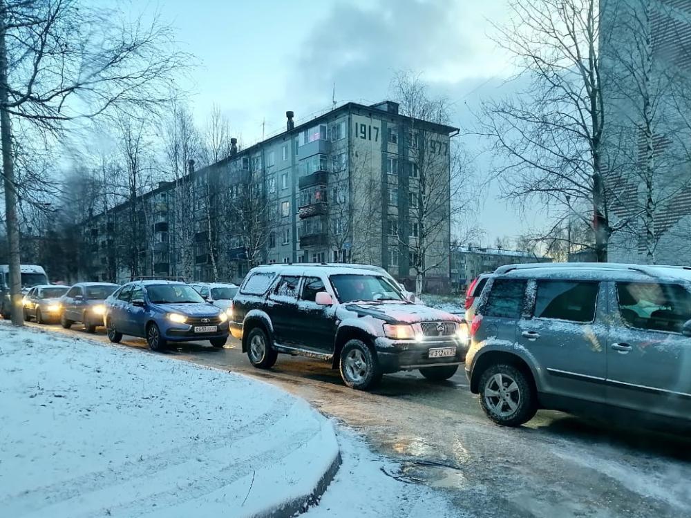 Сегодня с утра жители Новодвинска столкнулись с гигантской пробкой, которая растянулась от комбината до въезда в город. В среднем новодвинцы стоят в пробке по 40-50 минут.