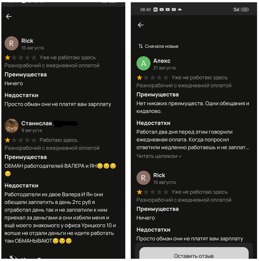 Кроме того, в редакцию обратились люди, ранее работавшие с ИП Лапиной. Они утверждают, что работодатель «кинул» их на деньги. Отзывы в комментариях на сервисе по поиску вакансий подтверждают эти слова.