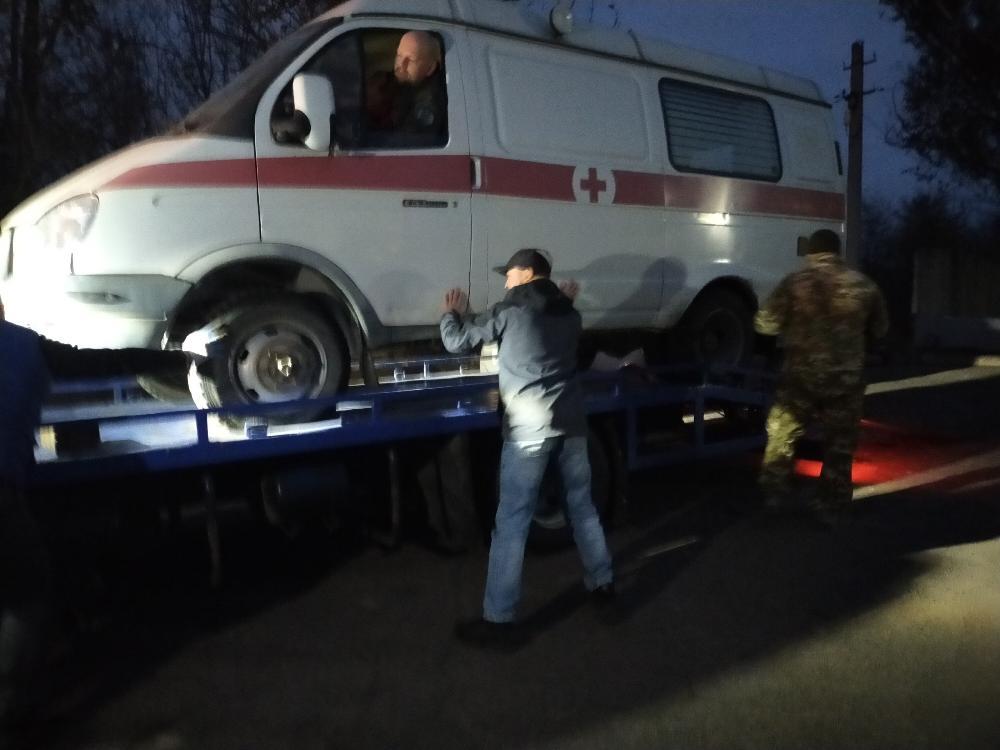 К юго-западу от Донецка передача одного из автомобилей проходила поздно вечером. Это одна из мер безопасности на территориях рядом с фронтом. «ГАЗель», отправленную Коношской районной больницей выгрузили с помощью эвакуатора. С командиром взвода батареи 122-мм гаубиц 2-го артиллерийского полка мы разговаривали уже за полночь. По его словам главная задача, которую постоянно выполняют его орудия — непосредственная поддержка штурмовой пехоты.