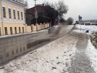 На участке от «Алвиза» и до Суворова тротуара так и нет, причём на протяжении нескольких десятков метров там имеется лишь узкая тропинка, которая вплотную примыкает к проезжей части. Весной и осенью ходить по ней и так не доставляло особого удовольствия, а теперь на свежем асфальте образовалась лужа. Если по ней проедет машина, то с высокой долей вероятности грязная водица окатит пешеходов. А так как трафик авто на набережной не меньше, чем на Троицком проспекте, то у всех там ходящих есть возможность принять грязевые ванны.