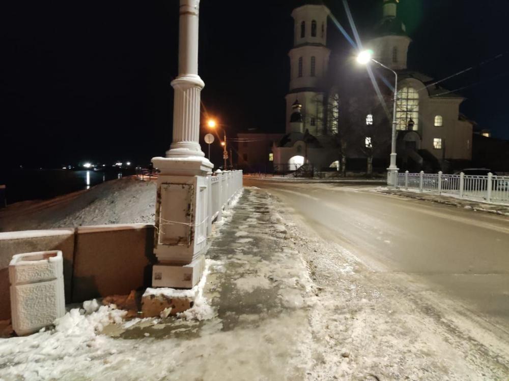 Сегодня ситуация повторилась. Резко похолодало и вместо того, чтобы равномерно обработать участки набережной песком, их растопили солью. И снова в тех местах, за которые ответственно «ГБ».