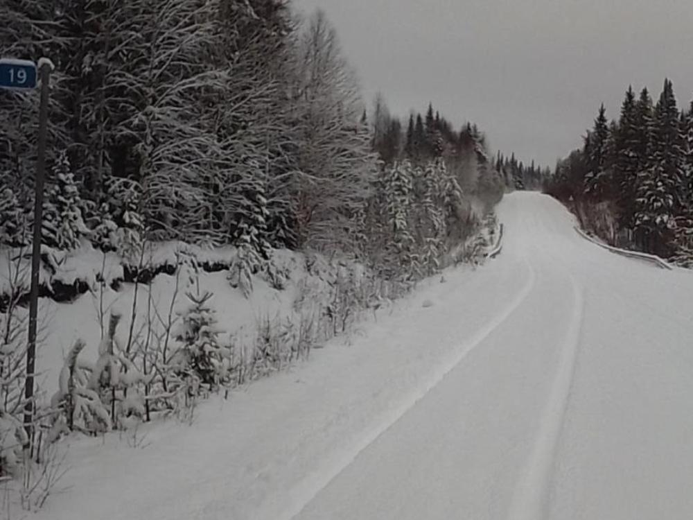 Фото и видео из телеграм-канала «Правда Поморья Z». Кадры сделаны на дороге между Лешуконским и Мезенью между 59 и 110 километром.