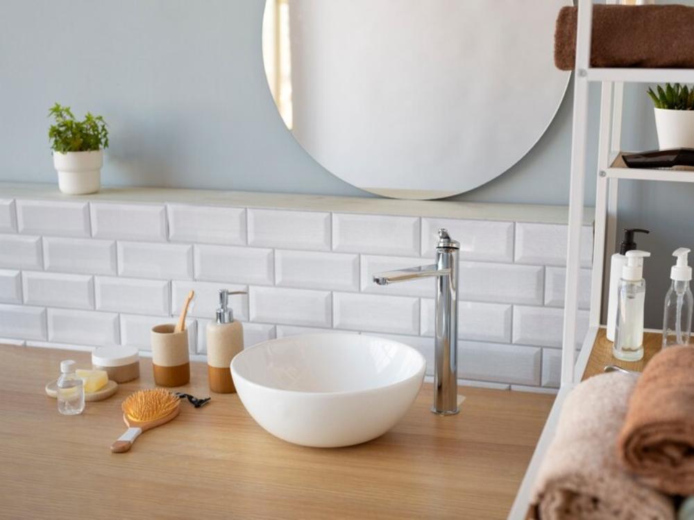 Для украшения ванной комнаты в экостиле подойдут предметы из натуральных материалов, например: