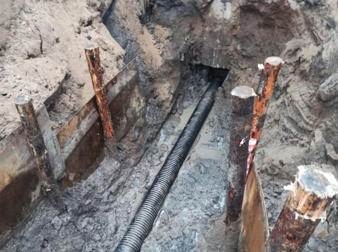 На сегодняшний день рабочие раскопали до трубы, производят обследование дефекта. Ремонтные работы планируется провести в течение суток, затем последует обратная засыпка и восстановление благоустройства для открытия проезда. Первый участок трубы на Троицком проспекте уже уложен.