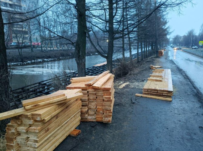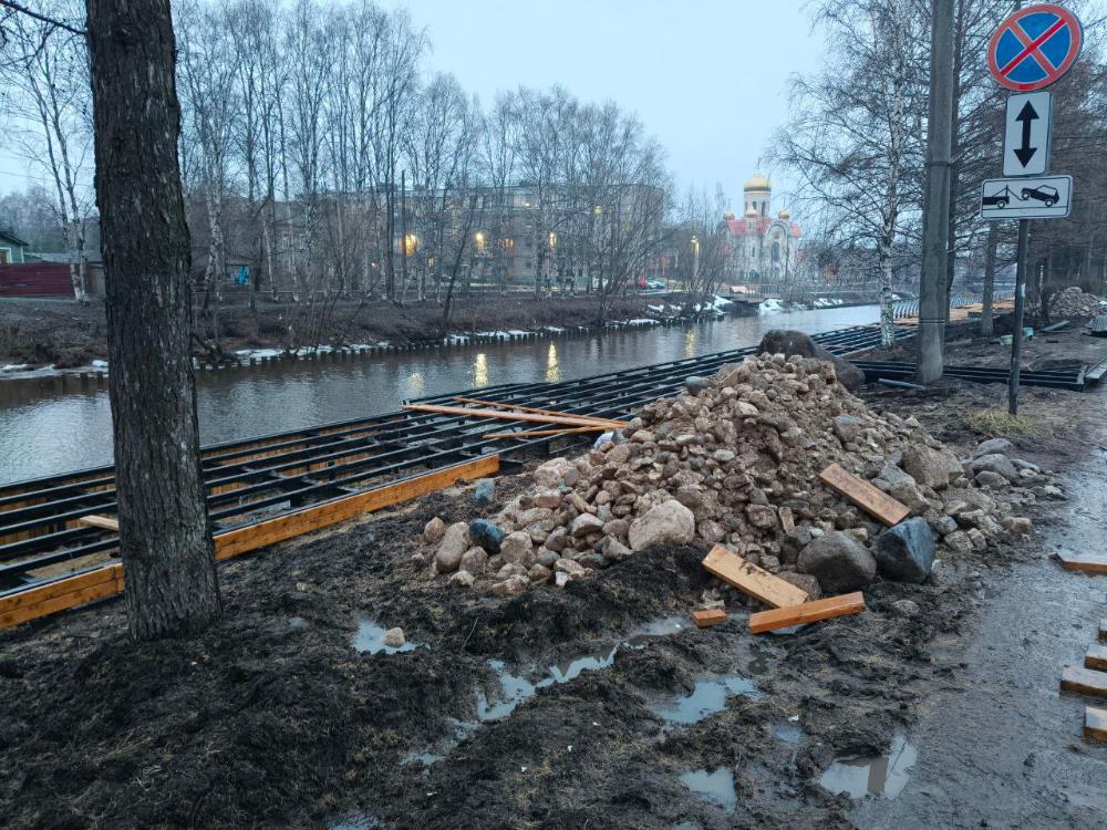 Берег реки со стороны Краснофлотской улицы продолжает преображаться очень неравномерно. У моста на Никольском проспекте чуть ли не последние штрихи вносят, даже зачем-то лавочки установили на не до конца смонтированный променад, в то время как со стороны улицы Советской не прибито ни единой доски и не закончено укрепление грунта. Усиливается ощущение, что со стороны Никольского строят «фотозону» для официальных отчетов, чтобы не кормить горожан одними и теми же кадрами металлического скелета под будущую прогулочную зону.