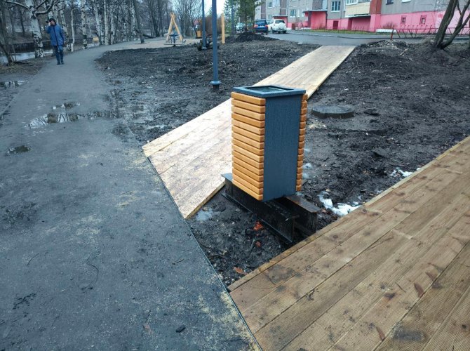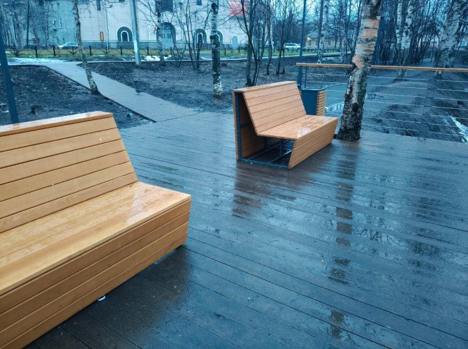 Вообще, мы уже давно писали, что застилать общественные пространства светлым деревом в далеко не самом чистом районе — затея сомнительная. За такими поверхностями нужен уход, иначе доски быстро разболтаются, начнут подгнивать и через год-другой попросятся на пенсию.