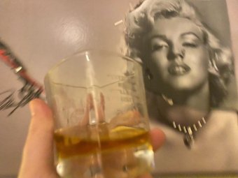 Злоумышленник зашел в винный магазин и, полагая, что за ним никто не наблюдает, взял бутылку виски, спрятав за сумкой, а затем ушёл.