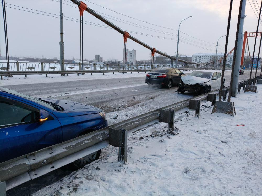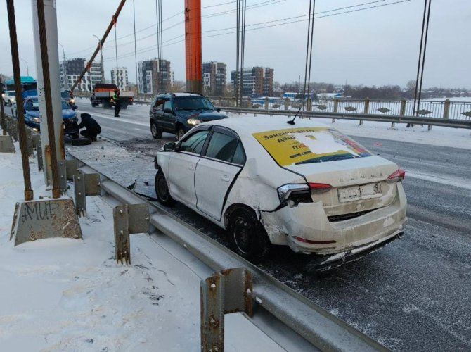 Участниками аварии стали пять автомобилей (оказывается, на данном участке произошло два ДТП). Сейчас на мосту остались две тачки — три отогнали на Гагарина. На месте была замечена машина реанимации, которая спешно кого-то забрала и уехала.