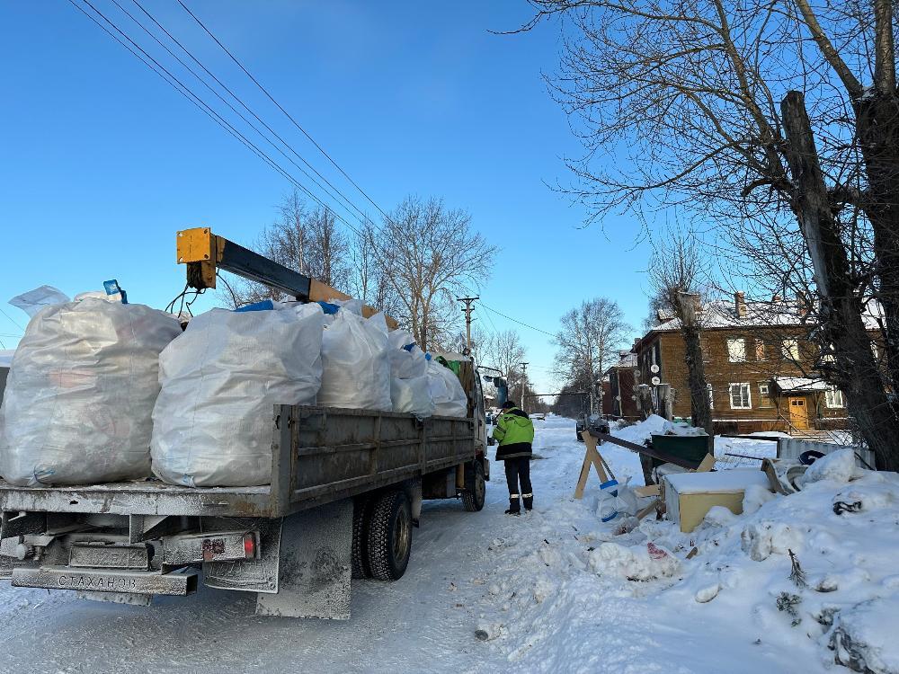Параллельно с вывозом мешков ведется и уборка. По словам заместителя главы Соломбальского округа Максима Милинтеева, поддержание чистоты после вывоза будет продолжаться. Организован подбор выпавшего и вновь образованного мусора, а также выколка этого мусора из льда.
