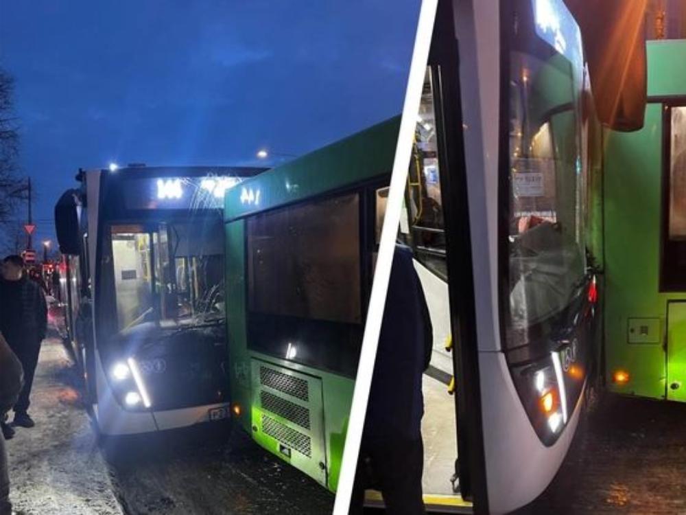 Сегодня в Архангельске на перекрёстке Урицкого с Обводным столкнулись два автобуса — № 144 и № 110. Примечательно, что о запуске первого, прибывшего в столицу Поморья из Татарстана, с пафосом писали местные СМИ.