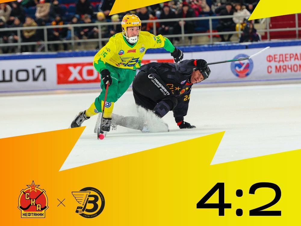 Однако «Водник» продолжил биться и усилия наших дали результат — второй гол в ворота хозяев льда со штрафного забил Евгений Дергаев.