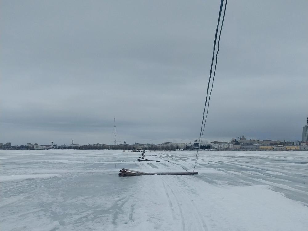 Вечером 1 апреля глава Октябрьского округа областной столицы Алексей Калинин заверил, что толщина льда там в пределах нормы и в целом передвижение по переправе безопасно. Скорее всего, так оно и есть, однако пройти по ней, не замочив ноги, невозможно, только если вы не в сапогах. К тому же вчера там рухнули столбы линии электроснабжения.
