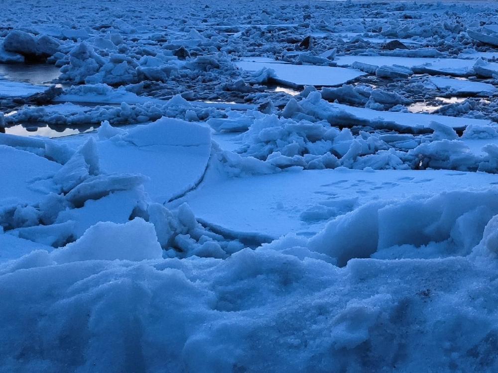 Голова ледохода от «Сухонской» волны на Северной Двине с 9 апреля удерживается в заторе выше посёлка Абрамково (472 км от Архангельска).