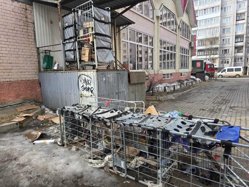 Разгрузка товара проводится с тротуара, а прямо за зданием — собственная свалка.