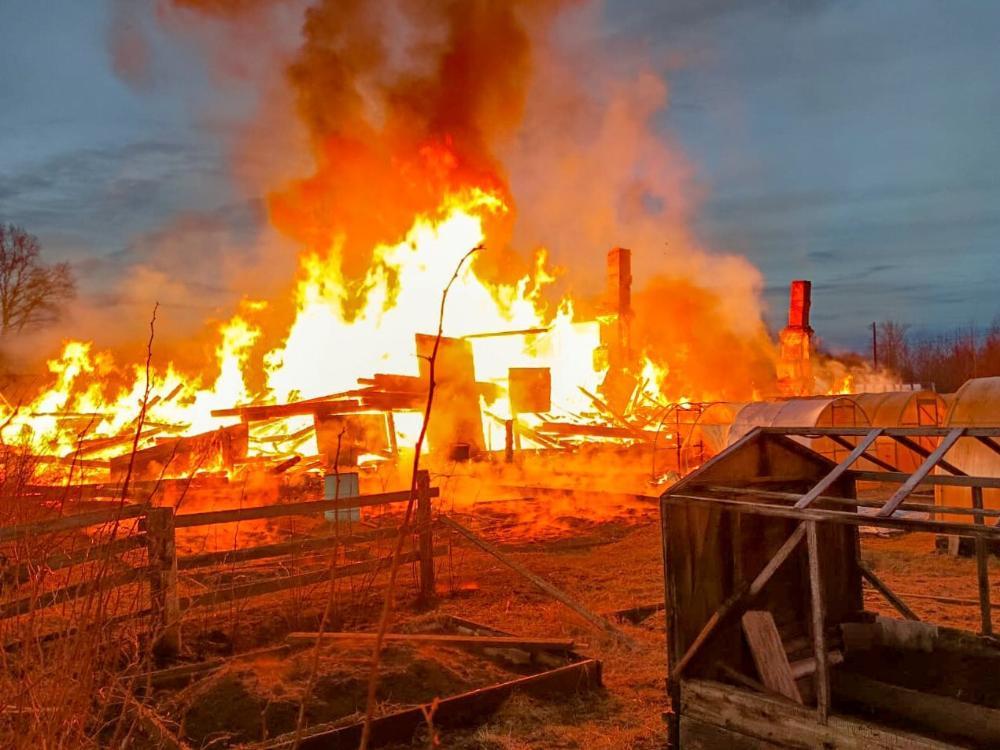 Фото: Агентство ГПС и ГЗ Архангельской области.Обошлось без пострадавших. Огонь уничтожил дом полностью. Пожарным удалось сохранить хозяйственные постройки и многоквартирный дом, который находился поблизости.