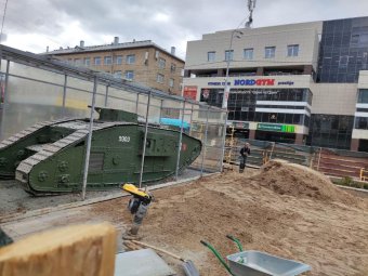 Отремонтированная всего полтора года назад территория возле ТЦ «Полярный» сегодня снова заросла забором, забросана песком, а людям, похоже, всё лето придется обходить это место стороной, ведь срок у контракта на замену домика для танка истекает лишь в августе.