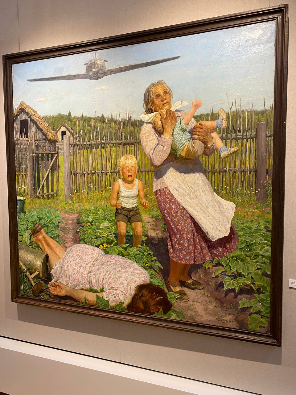 «После» — работы от 1945 до 80-х годов прошлого столетия. Часть из них либо почти не имеет отношения к войне, либо не имеет вовсе. Кажется, такие картины попали в экспозицию только благодаря написанию в ХХ веке.