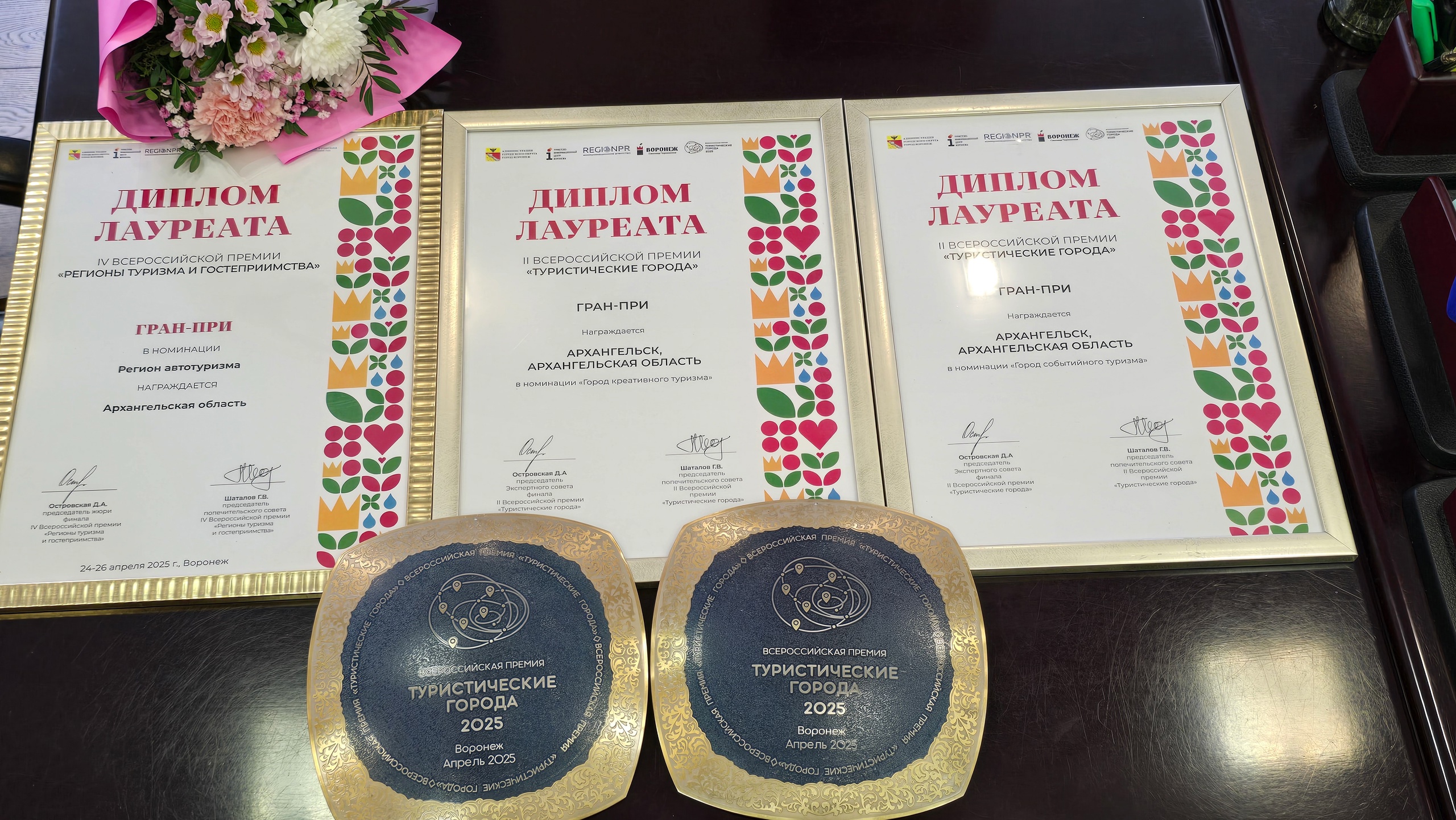 Сегодня руководитель областного Центра развития туризма и культуры Екатерина Кузнецова передала архангельскому градоначальнику Дмитрию Мореву дипломы, которые столица Поморья получила в финале всероссийской премии. Она представляла регион и его столицу на презентации проектов в Воронеже. Результат — два Гран-при: в номинациях «Город событийного туризма» и «Город креативного туризма». У области — высшая награда «Регион автотуризма».