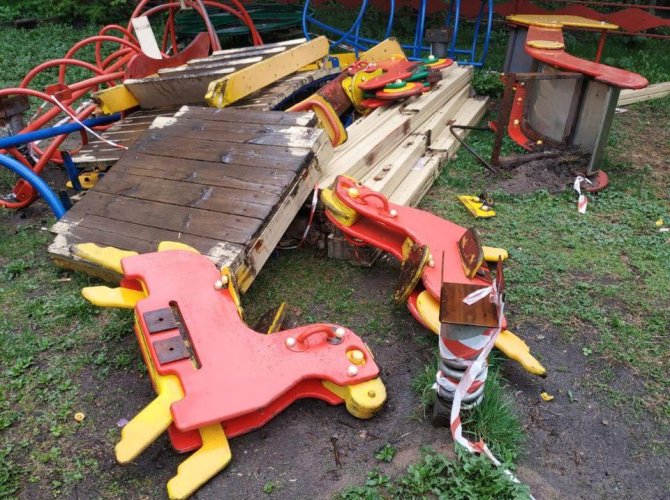 «В связи с неисправным техническим состоянием и истечением максимального срока эксплуатации детского игрового оборудования на детских игровых площадках по адресам: