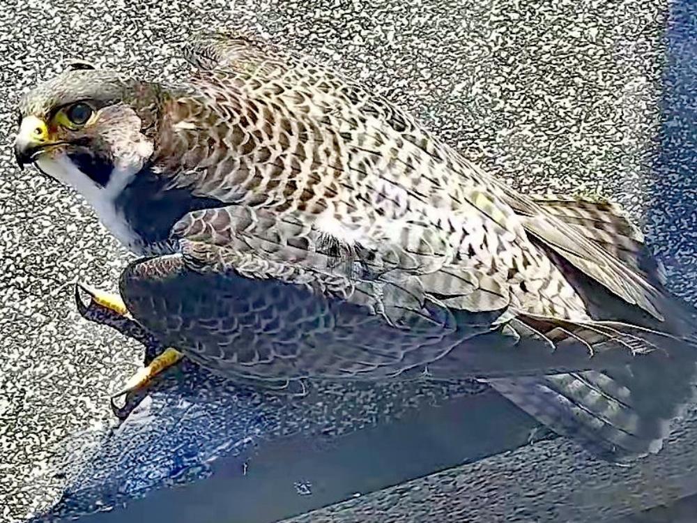 В 2025 году соколиная пара прилетела в новом составе — у самца появилась молодая партнёрша, и пара пока не смогла обзавестись потомством. Как отмечают орнитологи, это естественное явление для хищных птиц, особенно в первый год гнездования, когда самка еще только пытается пробовать себя в качестве матери семейства. В апреле она отложила единственное яйцо — оно оказалось маленьким и, как выяснилось позже, пустым, без сформированного эмбриона. После этого яиц в кладке не появилось.