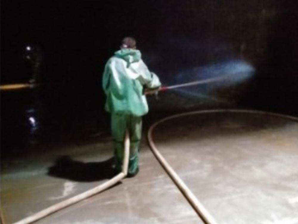 Трудоёмкая операция требует терпения и выносливости — стены резервуара возвышаются почти на 5 метров. Далее мы обрабатываем стены и пол методом хлорирования и промываем все это проточной водой. Для исключения загрязнения воды процедуру повторяют несколько раз. На заключительном этапе лаборатория проводит отбор воды для исследований по ряду показателей, включая бактериологическое загрязнение и концентрацию остаточного хлора.