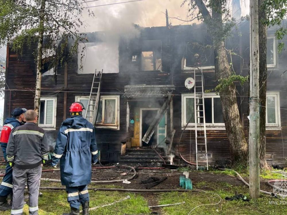 Огонь мог перекинуться на рядом стоящие деревянные дома. Произошло обрушение кровли. В результате пожара пострадали два человека. Ещё двое могут находиться под завалами.