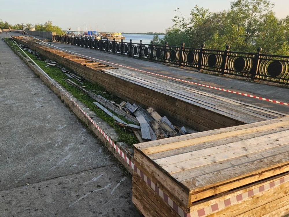 В конце апреля мы обратили внимание на отвратительное состояние рекреационных зон на набережной Северной Двины от улицы Садовой до Шубина: тут и там торчали гвозди, многие доски сломаны.