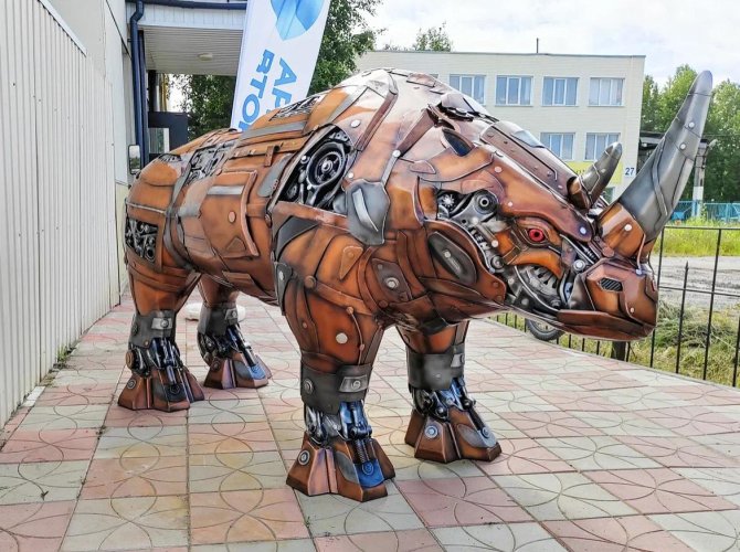 — При выборе персонажа мы остановились на очень харизматичном, но не совсем привычном для наших краёв животном. Носорог — это мощный выразительный образ. Он символизирует силу, стойкость и неуязвимость. Считаем, что в данный момент необходимо обращать внимание на такие качества, наделять их конкретными художественными формами. «Медный носорог» стал частью масштабной программы компании, направленной на популяризацию recycling-культуры среди населения. Это наш третий арт-объект, который изготовлен из автомобильных запчастей и различного металлолома. Мы надеемся, что он поможет привлечь внимание к экологическим вопросам, поднимет уровень осведомлённости о важности переработки отходов и заботе об окружающей среде, — прокомментировал событие представитель компании «Арктиквтормет» Александр Гашев.