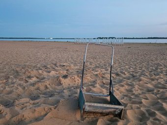Ещё осенью 2023 года архгорадмин анонсировал закупку пляжеуборочного прицепа «Barber 400», но на пляж областной столицы он так и не выбрался.