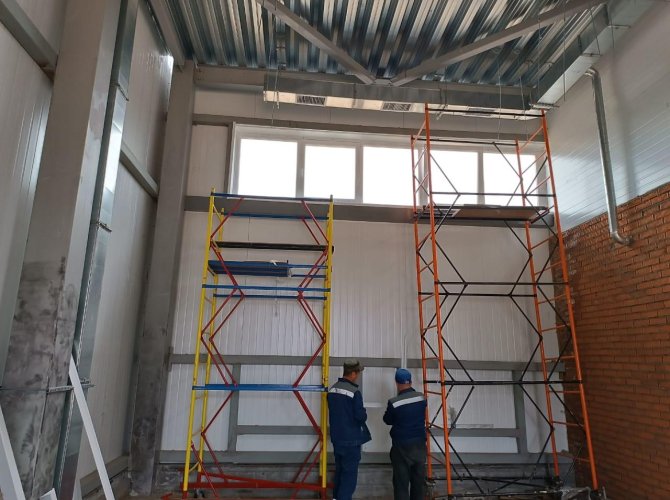 Сегодня на объекте ведутся отделочные работы и монтаж систем вентиляции в здании мусоросортировочного комплекса, также ожидается поставка электрооборудования и систем видеонаблюдения.
