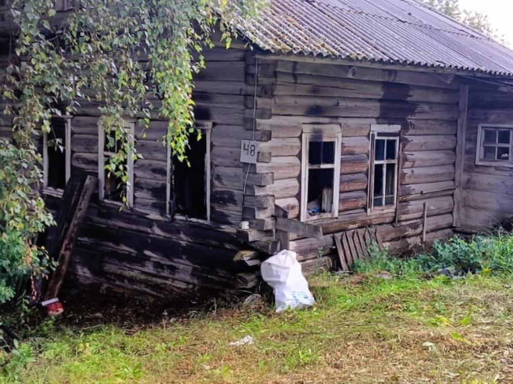 Вчера в 16:30 в заброшенном деревянном доме в деревне Леушинской Вельского округа произошел пожар.
