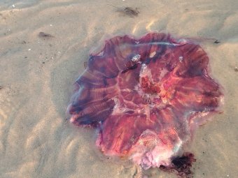 Дело не только в холодной воде, и это несмотря на жару, а из-за массового нашествие медуз. В основном это цианея красно-вишнёвого цвета, а также в меньшем количестве ушастая аурелия.