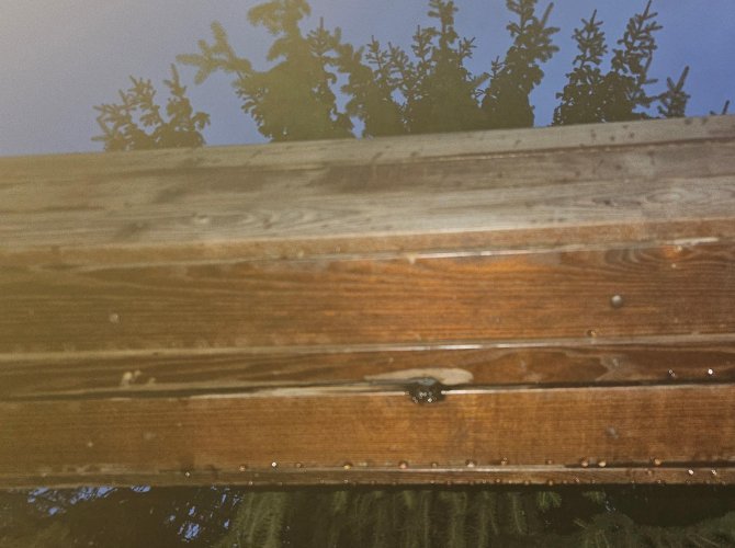 Тогда мы также обращали внимание на то, что конструкция закреплена ненадёжно — если на неё сядут двое взрослых людей не самой хилой комплекции, то всё это дело рано или поздно (скорее, первое) оборвётся. Что, собственно, снова и произошло на днях. Рым-болт, вкрученный в верхнюю часть качелей, оказался просто вырван, судя по всему, он вылетел под тяжестью усевшихся людей. Что, в общем-то, было лишь вопросом времени.