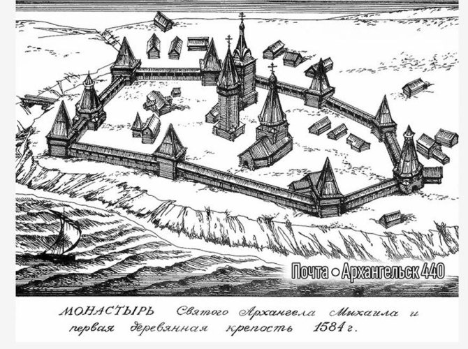 Официальной датой пристроек к Михайло-Архангельскому монастырю того, что позволило обозначить строение, как город Новохолмогорск товарищи историки называют 28 июня 1584 года. Заметьте, о граде Архангела Михаила — Архангельске — ни звука!