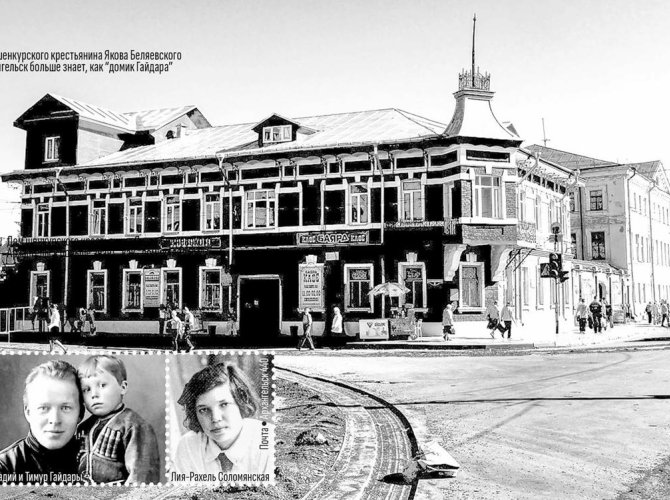 Лия-Рахель после школы начала работу в пермской газете «Звезда» («На смену»), куда и приехал Аркадий Голиков. В газете «Звезда» он впервые подписался псевдонимом, став Гайдаром. А Рахель Соломянскую именно будущий муж Аркаша переименовал в Лию. Вот так. Она помогала ему писать первую, абсолютно неизвестную повесть Голикова-Гайдара «Жизнь ни во что». Ту-то они и поженились. Ну, и где здесь Архангельск?