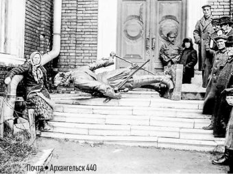 Красовался Пётр недолго. Пришли красные и шваркнули императора-реформатора в грязь с постамента. 1920 год. Император со шпагой сколько-то полежал носом в землю. Пока сердобольные горожане не затащили статую на крыльцо. Следующее время возле неё собирались посидеть, лясы поточить, посудачить, семечки полузгать. А что, безмолвный император не мешал. На него можно было как-то примоститься, присесть… Перед войной бронзовую статую передали Краеведческому музею и убрали с глаз подальше. А вот после войны сообразили: и Пётр не последнее императорское лицо, да и скульптор Антокольский фигура творчески знаменитая. В 1948 году Архангельск Петра реабилитировал и поставил на прежнее место, откуда начался город на Северной Двине.