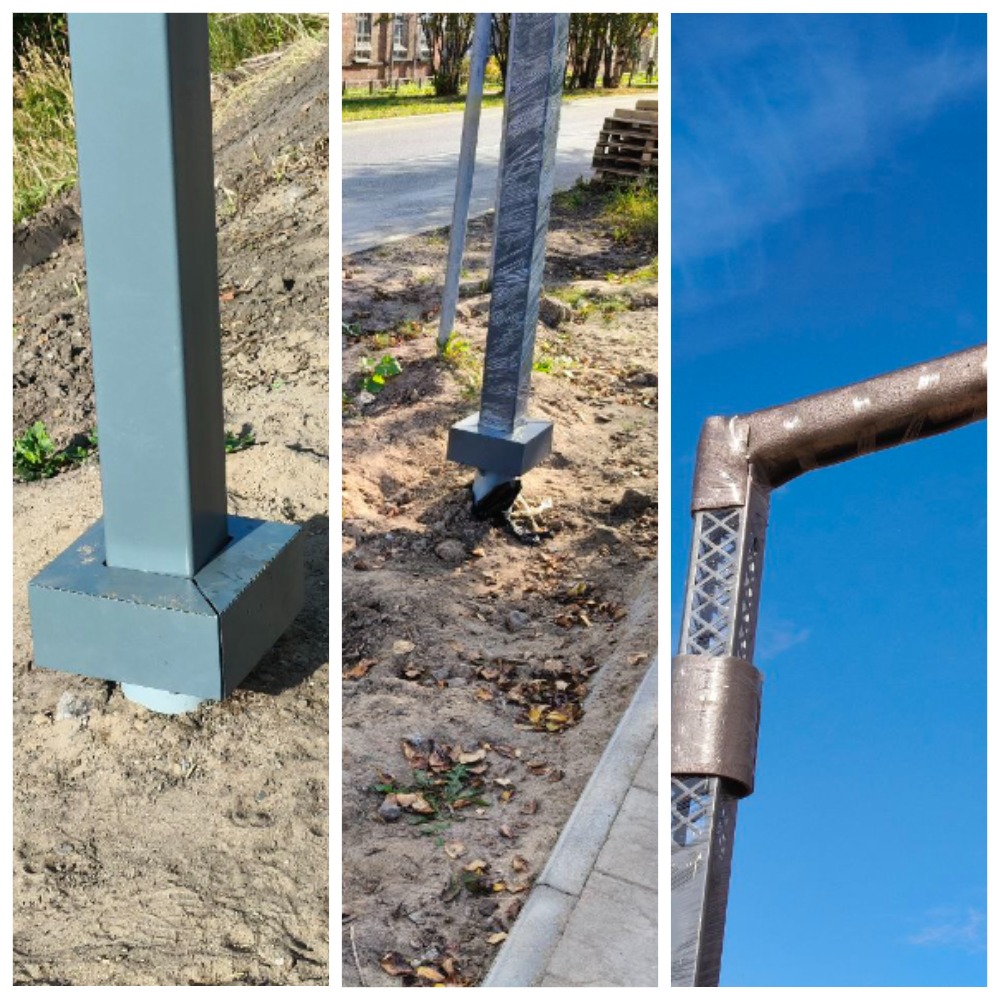 На момент написания публикации они не светят, укутаны в плёнку, но, скорее всего, уже подключены. Кроме того, смущает их конструкция: некоторые из них имеют одну лампу, светящую строго на дорожку, а двойные порой установлены так, что второй лампой будут освещать куст. 9 сентября они некрасиво торчат из земли, так и прося присыпать землёй торчащие опоры.