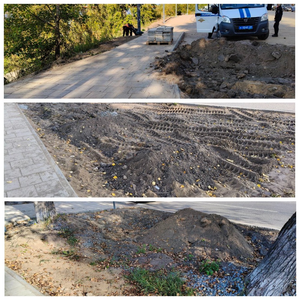 Всё, что вокруг дорожек требует выравнивания, посева газона и приведения в божеский вид. Именно следы гусениц, неубранные кучи грунта и повсеместные остатки строительных отходов создают то самое ощущение неухоженности. Именно из-за таких пейзажей и появляется чувство, будто гуляешь не по общественной территории, а по действующей стройке.