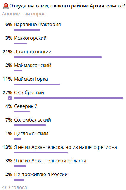Канал Говорят, в Архангельске провёл опрос на тему того, откуда их читатели, из какого района города, проживают ли в области или вообще в стране.